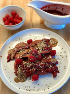 From Dr. Casey Means Casey Means MD Makes: 6-8 pancakes Time: ~30 minutes Ingredients: For the pancakes For the raspberry compote Directions: Why it helps blood sugar: